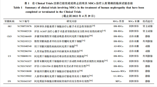 主要參考資料: 楊蘊(yùn)釗,石美涵,周誠(chéng),等. 間充質(zhì)干細(xì)胞在腎臟疾病治療中的應(yīng)用進(jìn)展[J]. 基礎(chǔ)醫(yī)學(xué)與臨床,2023,43(1):30-37. DOI:10.16352/j.issn.1001-6325.2023.01.0030.
