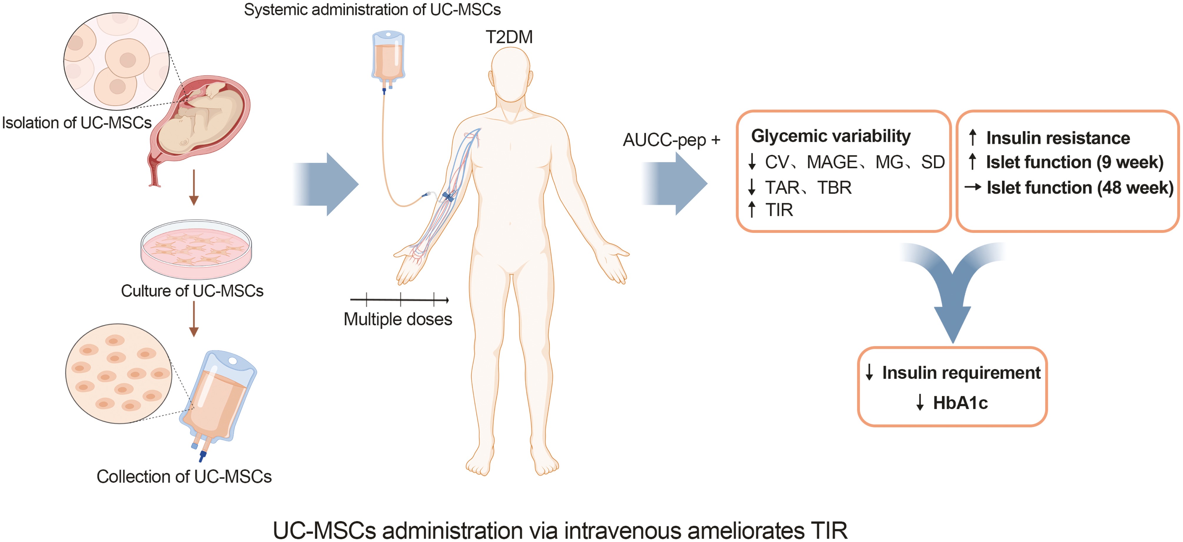 這項前瞻性、單中心、隨機、雙盲、安慰劑對照試驗證明,通過靜脈輸注臍帶間充質干細胞可有效改善TIR和血糖變異性。