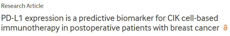 2019年,中山大學(xué)腫瘤中心的研究團(tuán)隊(duì)在《癌癥免疫治療雜志》上,發(fā)表了一項(xiàng)臨床研究。表明CIK細(xì)胞治療在PD-L1高表達(dá)的乳腺癌患者中展現(xiàn)出了顯著療效。