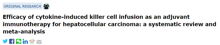 解放軍總醫(yī)院和韓國(guó)五大學(xué)附屬醫(yī)院進(jìn)行的研究都展示了細(xì)胞因子誘導(dǎo)殺傷(CIK)細(xì)胞免疫治療在HCC治療中的潛在效果。