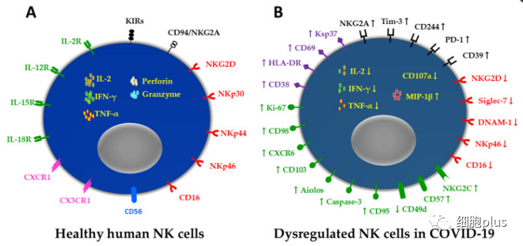 已經在新冠肺炎患者中觀察到NK細胞的失調,這些細胞表現出衰竭和功能障礙,NK細胞功能障礙與新型冠狀病毒易感性增加有關,表明NK細胞的失調可能導致新冠肺炎的惡化。
