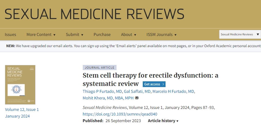 臨床案例二:美國和巴西的研究團隊在行業期刊Sexual Medicine Reviews上發表了題為Stem cell therapy for erectile dysfunction: a systematic review的綜述報告,研究表明細胞療法顯示出作為器質性男性勃起功能障礙的一種創新且安全的治療方法的前景。
