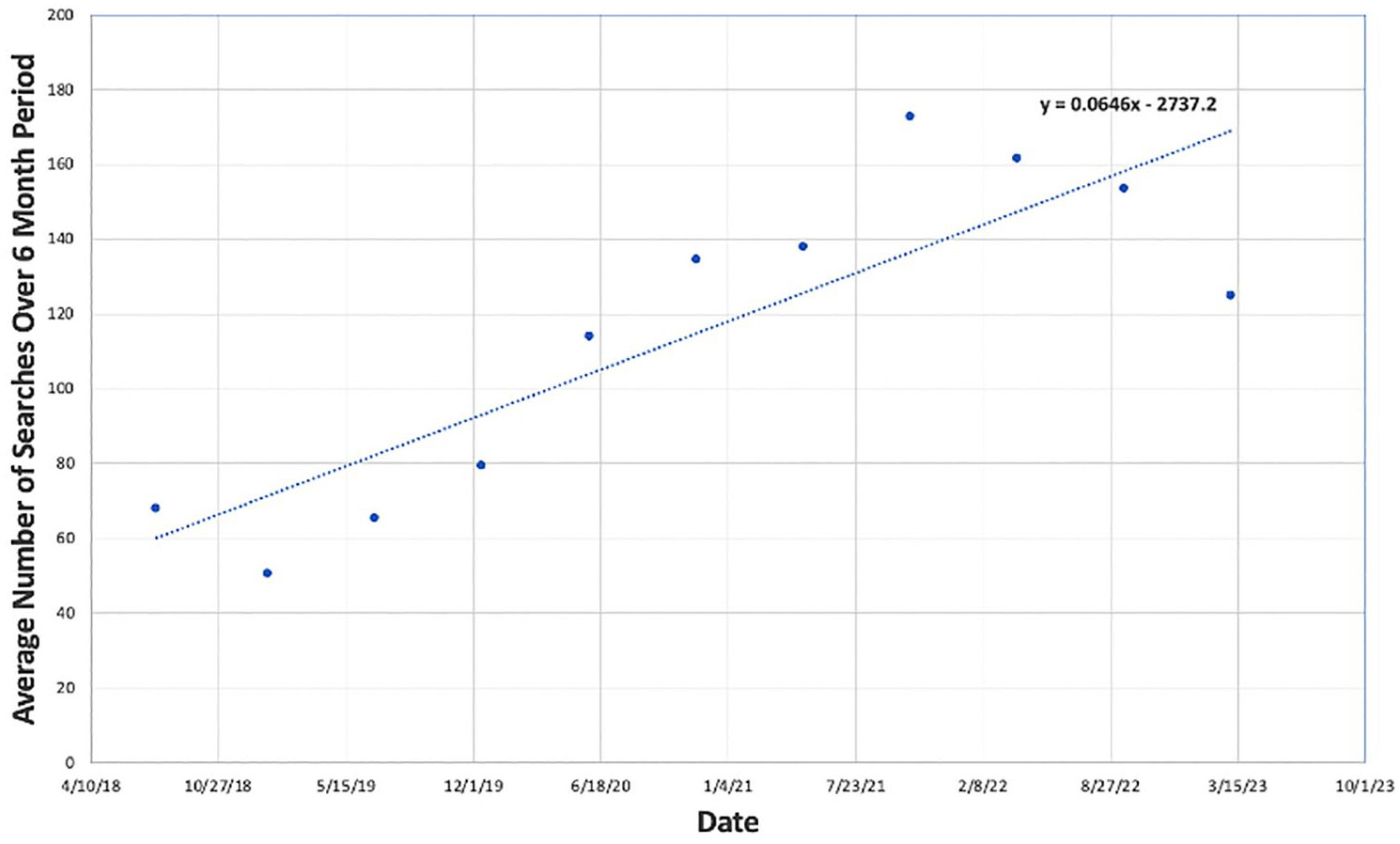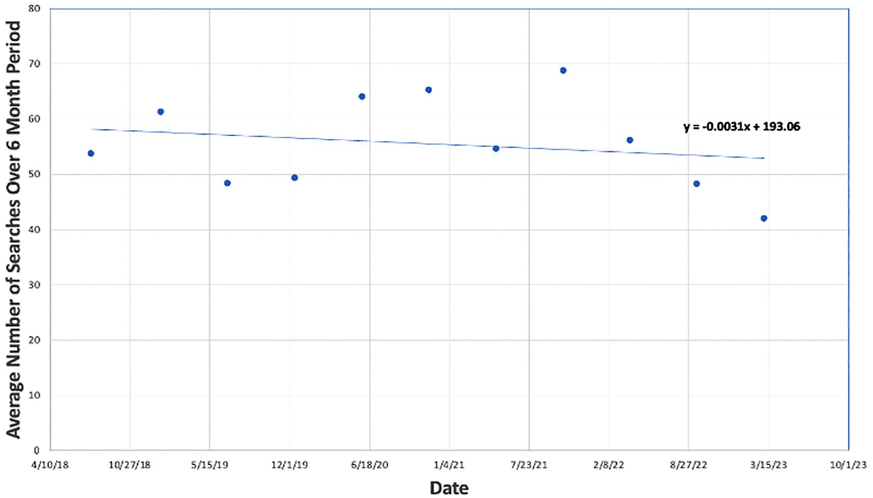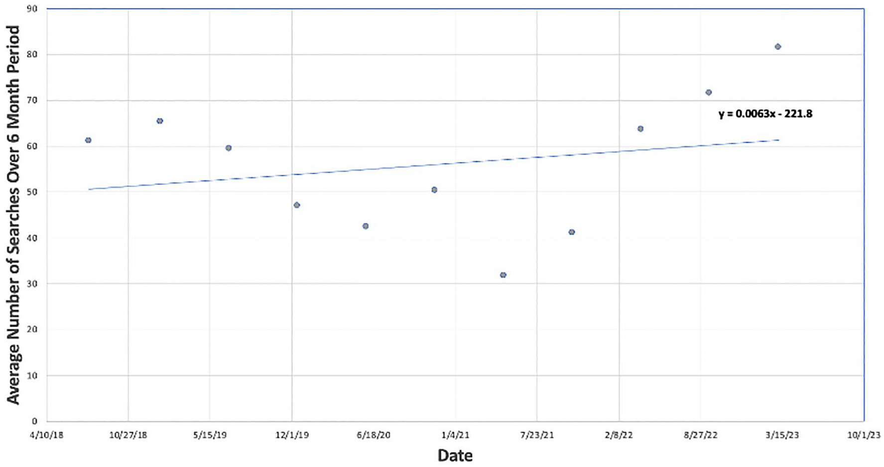 圖2顯示了2018年7月至2023年7月期間消費者谷歌趨勢描述的全國范圍內對使用SCT治療ED的興趣。