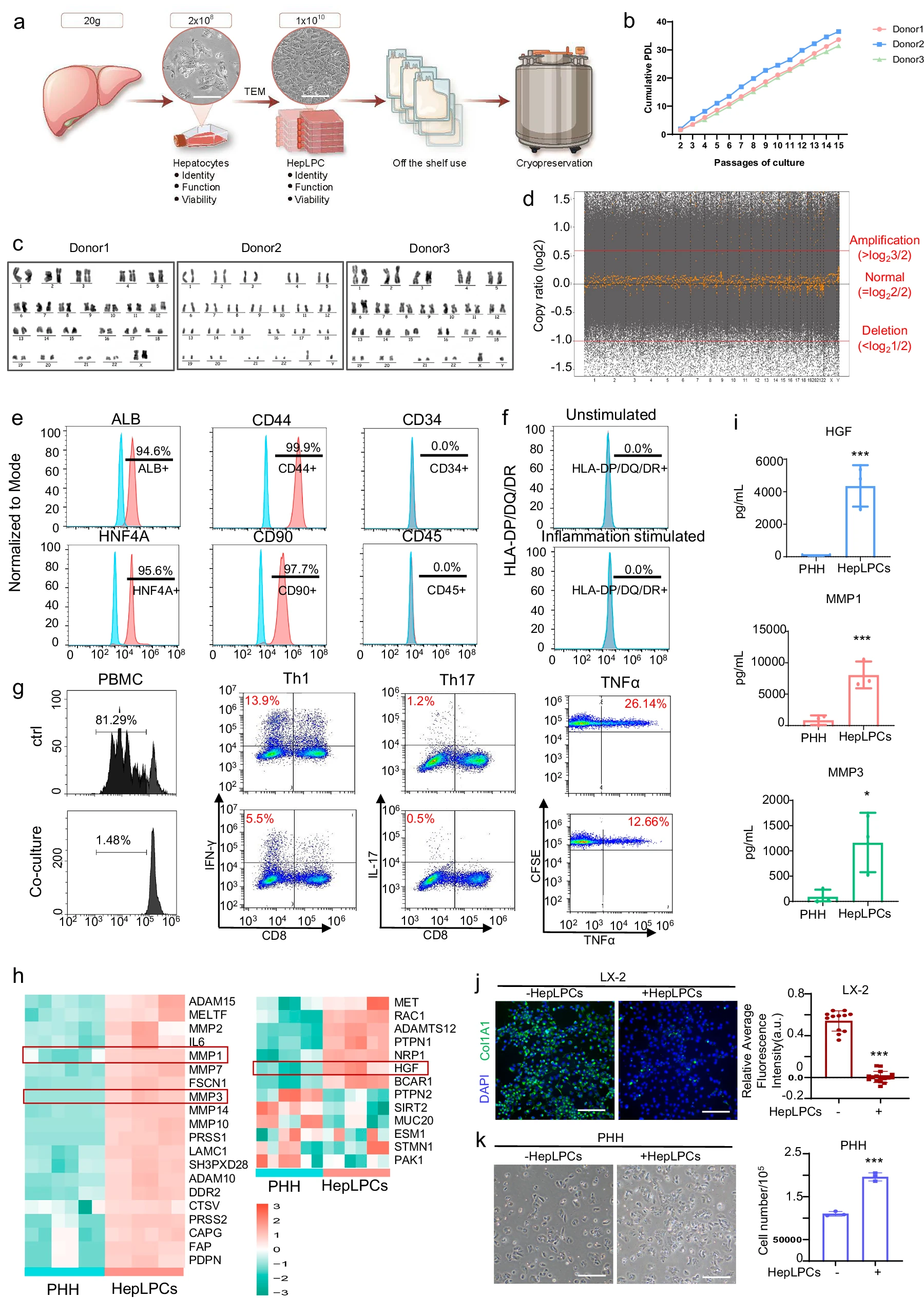 肝移植仍受供體器官短缺和手術(shù)本身風(fēng)險的限制,這凸顯了開發(fā)新型肝硬化療法的迫切需求。本研究開發(fā)了一種將人原代肝細胞轉(zhuǎn)化為可擴增的肝細胞衍生肝祖細胞樣細胞(HepLPCs)的方案,這些細胞能夠分泌高水平的基質(zhì)金屬蛋白酶和肝細胞生長因子。
