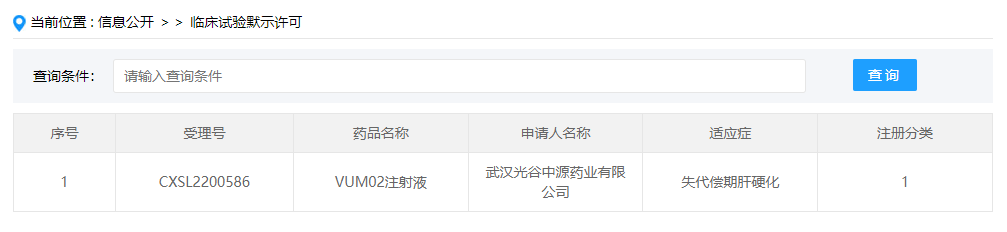 2023年2月10日/,據CDE官網公示,武漢光谷中源藥業有限公司提交的”VUM02注射液”獲得臨床試驗默示許可,適應癥為失代償肝硬化。據公開資料披露,武漢光谷中源藥業為中源協和細胞基因工程股份有限公司的全資子公司。