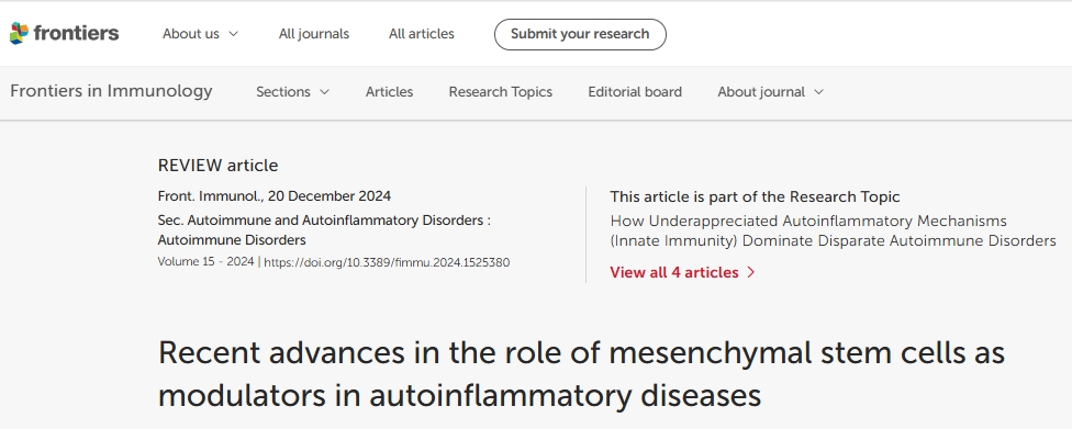 主要參考資料:[1]Chen B, Chen Z, He M, Zhang L, Yang L and Wei L (2024) Recent advances in the role of mesenchymal stem cells as modulators in autoinflammatory diseases. Front. Immunol. 15:1525380. doi: 10.3389/fimmu.2024.1525380