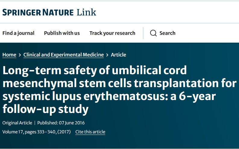 2016年,國際期刊雜志《臨床與實驗醫(yī)學》發(fā)表了一篇“臍帶間充質(zhì)干細胞移植治療系統(tǒng)性紅斑狼瘡的長期安全性:6年隨訪研究”的文章。