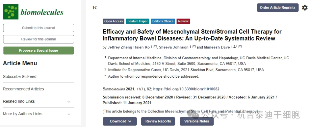 炎癥性腸病(IBD):2021年,期刊雜志《Biomolecules》生物分子發(fā)表了一篇間充質(zhì)干細胞/基質(zhì)細胞治療炎癥性腸病的療效和安全性:最新系統(tǒng)評價的文章,該綜述旨在介紹有關(guān)MSC療法在IBD中的安全性和有效性的最新研究。