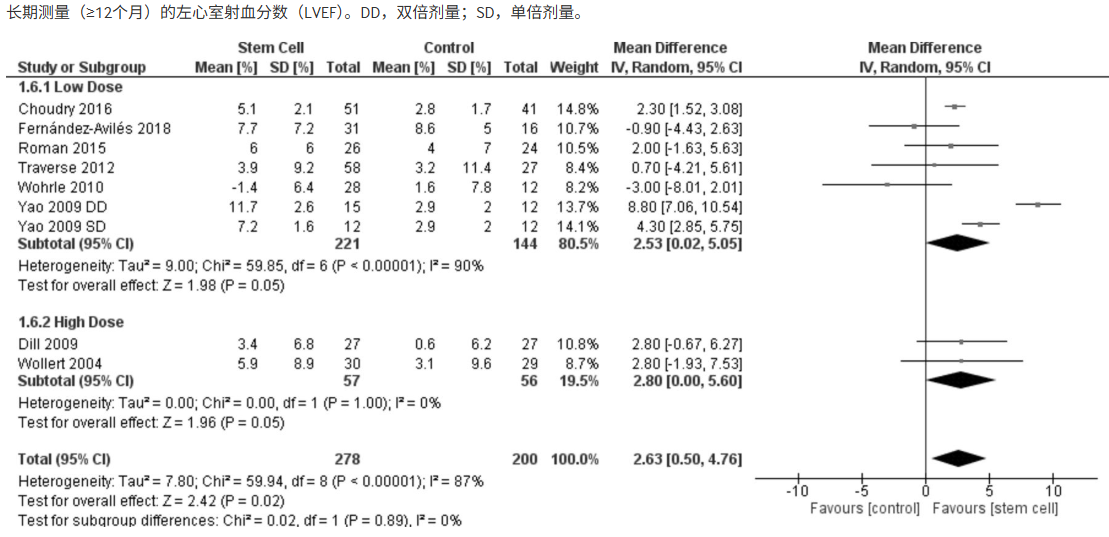 對于療效,干細胞療法并非即時見效的“特效藥”。研究顯示,患者心臟左室射血分數(shù)(LVEF)在6個月內(nèi)的提升僅約1.23%,尚未達到統(tǒng)計學顯著水平。然而,隨著隨訪時間延長至12個月以上,心功能的改善幅度逐漸明顯,LVEF平均提高了約2.63%。