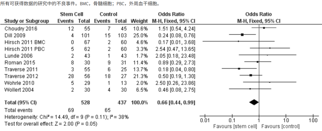在長達數(shù)年的隨訪中,接受干細胞治療的患者總體不良事件風險降低了約34%(OR=0.66),包括死亡、再次心梗和心衰再住院等重要臨床終點。更令人放心的是,研究中并未報告與干細胞治療直接相關的腫瘤病例,初步證實干細胞療法在短中期是相對安全可靠的。