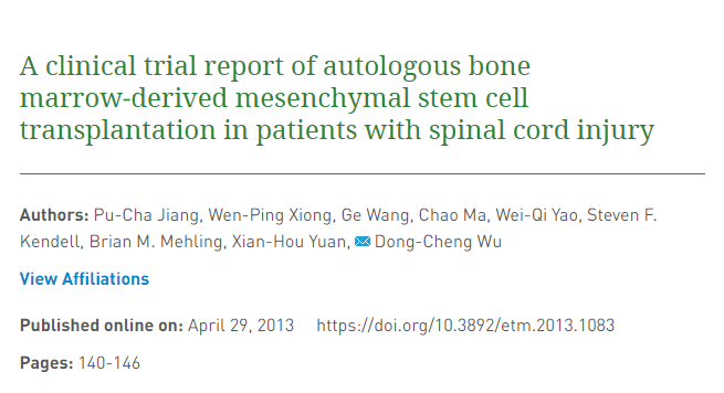干細胞移植治療脊髓損傷的臨床案例