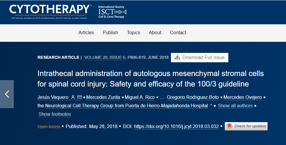 一項研究報告稱,自體間充質干細胞移植后運動和感覺功能顯著改善
