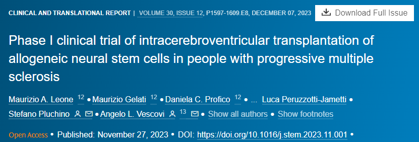 多發(fā)性硬化癥:2023年,一項(xiàng)由國際著名的醫(yī)學(xué)科研機(jī)構(gòu)共同合作完成,利用人類神經(jīng)干細(xì)胞(hNSC)治療進(jìn)行性多發(fā)性硬化癥(SPMS),在15位患者的試驗(yàn)中取得了令人矚目的突破。結(jié)果表明是一種安全且耐受的方法。研究成果,發(fā)表在近期的《細(xì)胞與干細(xì)胞》雜志上。