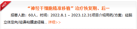 經(jīng)鼻內(nèi)鏡精準(zhǔn)移植神經(jīng)干細(xì)胞:2022年8月1日起至2023年12月31日,解放軍總醫(yī)院第六醫(yī)學(xué)中心啟動(dòng)了一項(xiàng)“神經(jīng)干細(xì)胞精準(zhǔn)移植”治療恢復(fù)期及后遺癥期腦梗死患者的I期臨床研究。經(jīng)腦立體定向/經(jīng)鼻粘膜途徑精準(zhǔn)移植神經(jīng)干細(xì)胞。