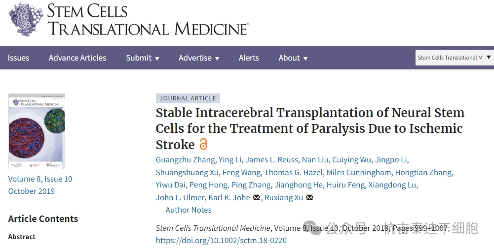 該項(xiàng)Ⅰ期研究發(fā)在國際期刊雜志《Stem Cells Translational Medicine》上,這項(xiàng)研究結(jié)果表明,Ⅰ期臨床研究結(jié)果反響良好,顯示出一種特殊的人源神經(jīng)干細(xì)胞系對(duì)于偏癱性中風(fēng)(身體的一側(cè)無力或癱瘓)后運(yùn)動(dòng)功能恢復(fù)的治療潛力。