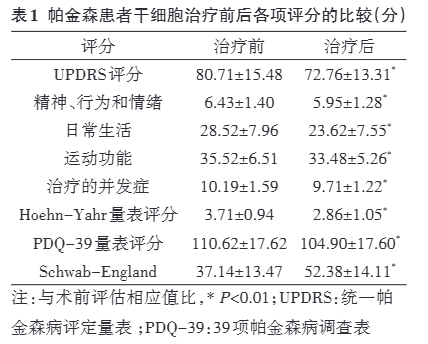 神經干細胞移植治療帕金森病,最長隨訪時間49個月,帕金森病評定量表評分改善,生活質量提高