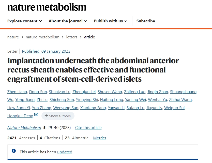 近期,北京大學、中國醫學科學院和北京協和醫學院等研究團隊合作,建立了一個全新的胰島移植策略:通過腹直肌前鞘下移植的方式,將人多能干細胞分化的胰島細胞(human  pluripotent stem-cell-derived islets,  hPSC-islets)移植回體內。