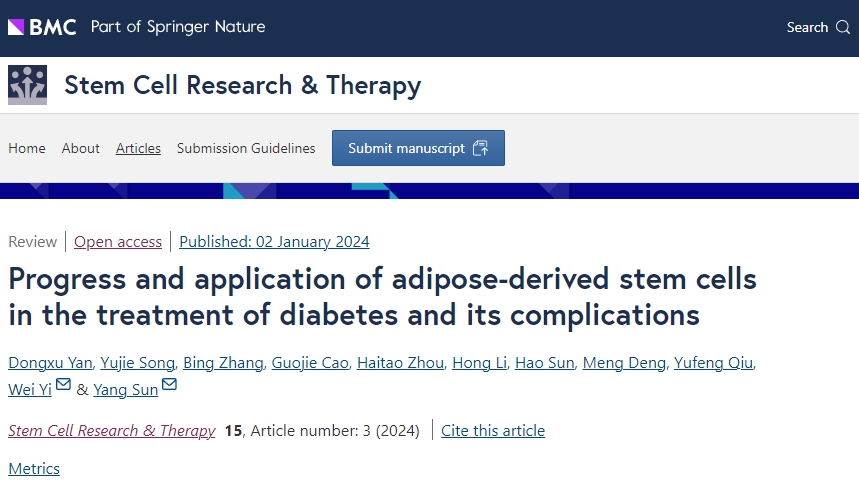 近日,國(guó)際期刊雜志《Stem Cell Research & Therapy》發(fā)表一篇脂肪干細(xì)胞在糖尿病及其并發(fā)癥治療中的進(jìn)展及應(yīng)用的文獻(xiàn)綜述,研究表明脂肪干細(xì)胞可能成為治療糖尿病的新方法。脂肪間充質(zhì)干細(xì)胞治療有可能改善動(dòng)物和人類的高血糖水平并減輕相關(guān)并發(fā)癥的癥狀。