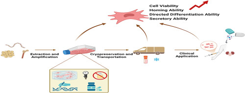 現有的凍存方案大多通過減少凍融過程中冰晶對細胞的損傷,避免運輸和儲存過程對MSC活力和功能的影響。此外,有研究建議,在臨床應用前,應將凍存的MSC至少進行一次體外培養,以恢復生理穩定性,確保其達到最佳治療狀態。這一步驟對于確保MSC進入DN患者體內時處于最佳的免疫調節和組織修復狀態,從而最大限度地發揮其治療潛力至關重要。