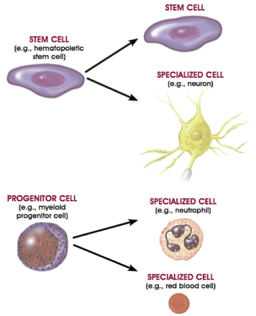祖細胞與干細胞非常相似。它們是生物細胞,并且像干細胞一樣,它們也具有分化成特定類型細胞的能力。然而,它們已經比干細胞更具特異性,只能被推動分化成它的“目標”細胞。然而,干細胞具有分化成許多不同類型細胞的能力,如圖1所示。表 1 詳細突出顯示了干細胞和祖細胞之間的比較。