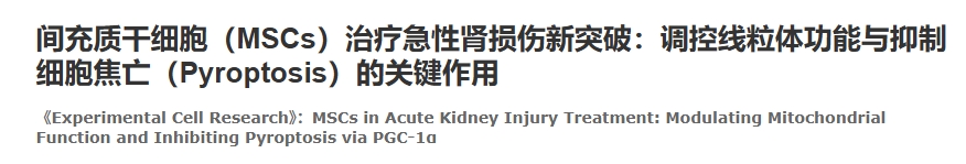 例如,2025年,《Experimental Cell Research》上發(fā)表了一項探究間充質(zhì)干細胞(MSCs)治療急性腎損傷(AKI)的機制的研究成果。研究人員通過構(gòu)建體內(nèi)缺血 / 再灌注(I/R)模型,以此探究MSCs治療AKI的作用機制。