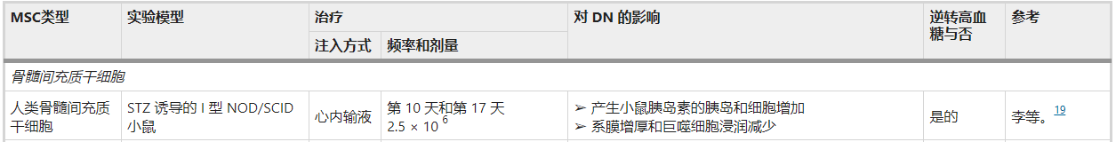 4. 同種異體BM-MSCs植入已用于治療糖尿病腎病的臨床試驗。