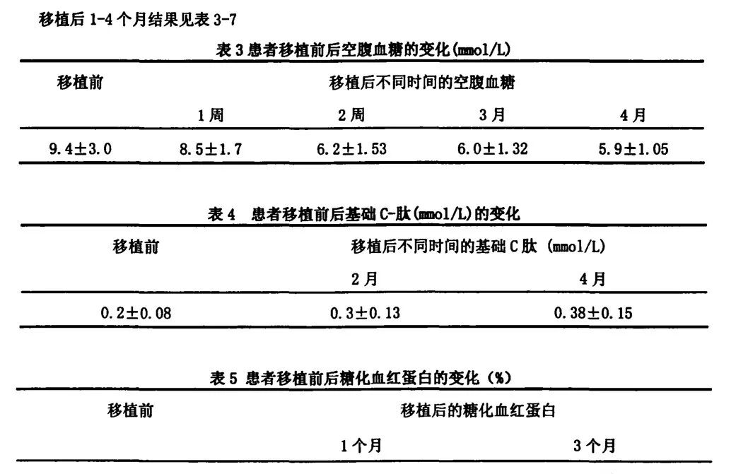 受試者空腹血糖由9.4(均值)降至5.9(均值),基礎C肽有所上升。