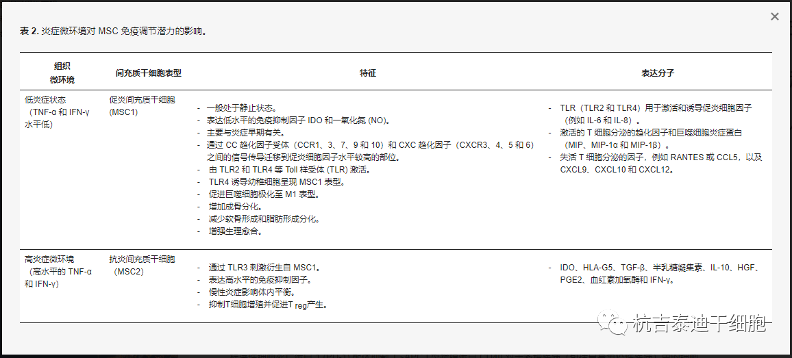 表2:炎癥微環(huán)境對(duì)MSC免疫調(diào)節(jié)潛力的影響。