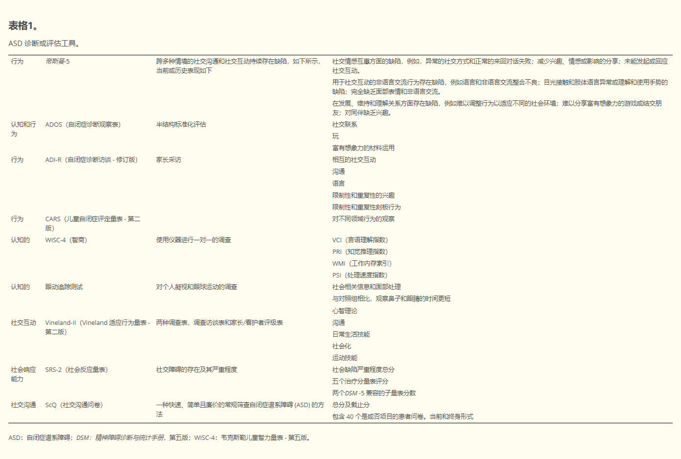 介紹:自閉癥譜系障礙(ASD)是一種復雜的神經發育障礙,以社交溝通困難、行為重復和興趣受限為特征,發病年齡較早。根據《精神疾病診斷與統計手冊第五版》(DSM-5),要達到自閉癥的診斷標準,兒童必須在社交溝通和互動的三個領域中的每一個領域都存在持續性缺陷,并在四種受限的重復行為中至少有兩種存在持續性缺陷(表1)。在過去二十年中,全球ASD患病率不斷上升,普遍篩查率達到 91%;有資料顯示,ASD患病率為2.2%。