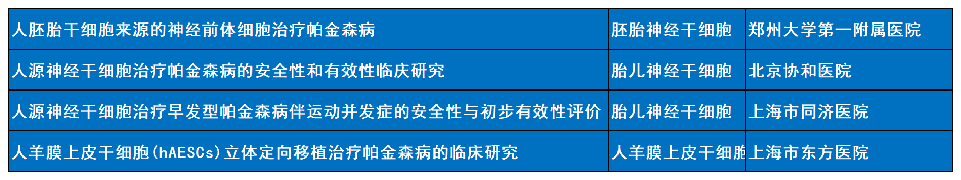 目前國內有哪些機構開展干細胞治療帕金森的臨床研究