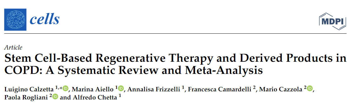 2022年5日,《細胞》雜志上發布了一篇標題為“基于干細胞的再生療法及其衍生產品在慢性阻塞性肺病 (COPD) 中的系統評價和薈萃分析”的研究。這項研究綜合評估了11個相關研究,并匯集了總計371名COPD患者的數據進行分析。