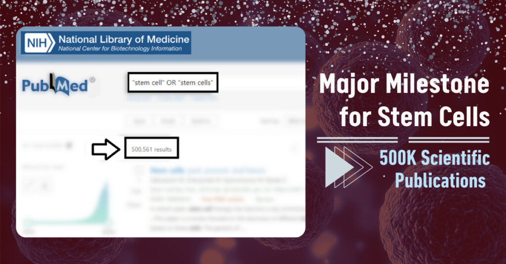 哇,干細胞界取得了一項巨大成就。我們查閱發(fā)現(xiàn)在PubMed.gov上發(fā)表的有關干細胞的論文正式突破了50萬篇!PubMed是美國國家醫(yī)學圖書館和NIH的一項服務,包含2700多萬條生物醫(yī)學文獻。它是世界上最大、最全面的科學出版物全球數(shù)據(jù)庫。