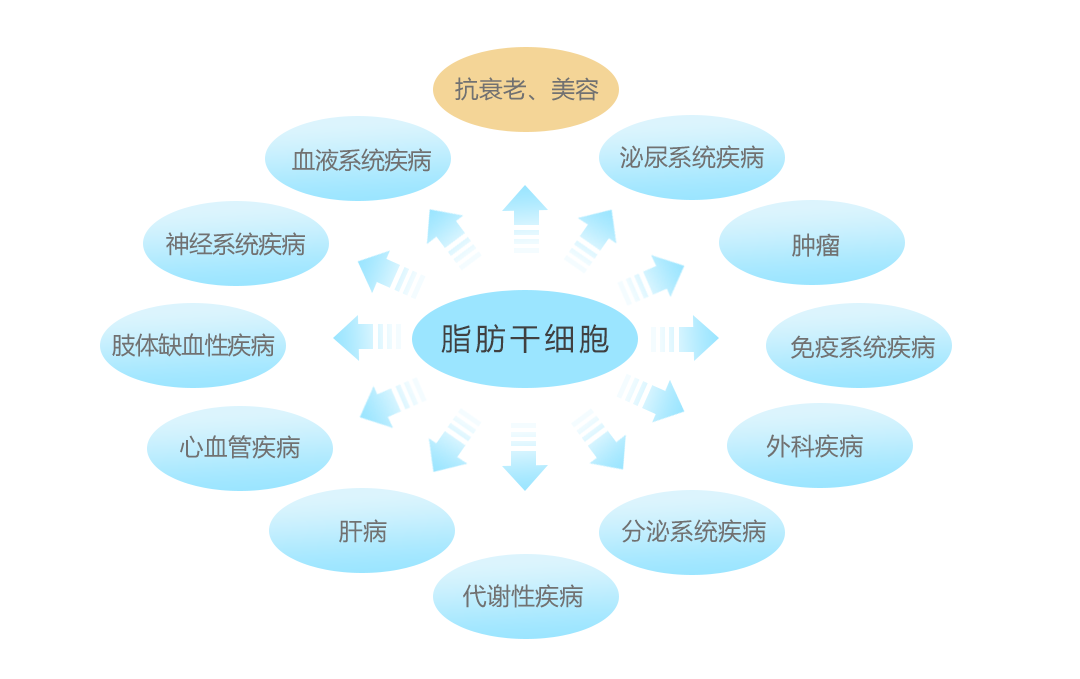 近年隨著再生醫(yī)學(xué)的不斷發(fā)展,科研人員希望利用干細(xì)胞的歸巢屬性、自我更新及修復(fù)能力,配合現(xiàn)有的治療手段,輔助治療某些臨床難以治愈的慢性疾病,如糖尿病、腦卒中、肝硬化、慢性阻塞性肺疾病、帕金森病、脊髓損傷、系統(tǒng)性紅斑狼瘡等,以改善癥狀、延緩病情繼續(xù)進展、提高患者的生活質(zhì)量,達到“錦上添花”的效果。