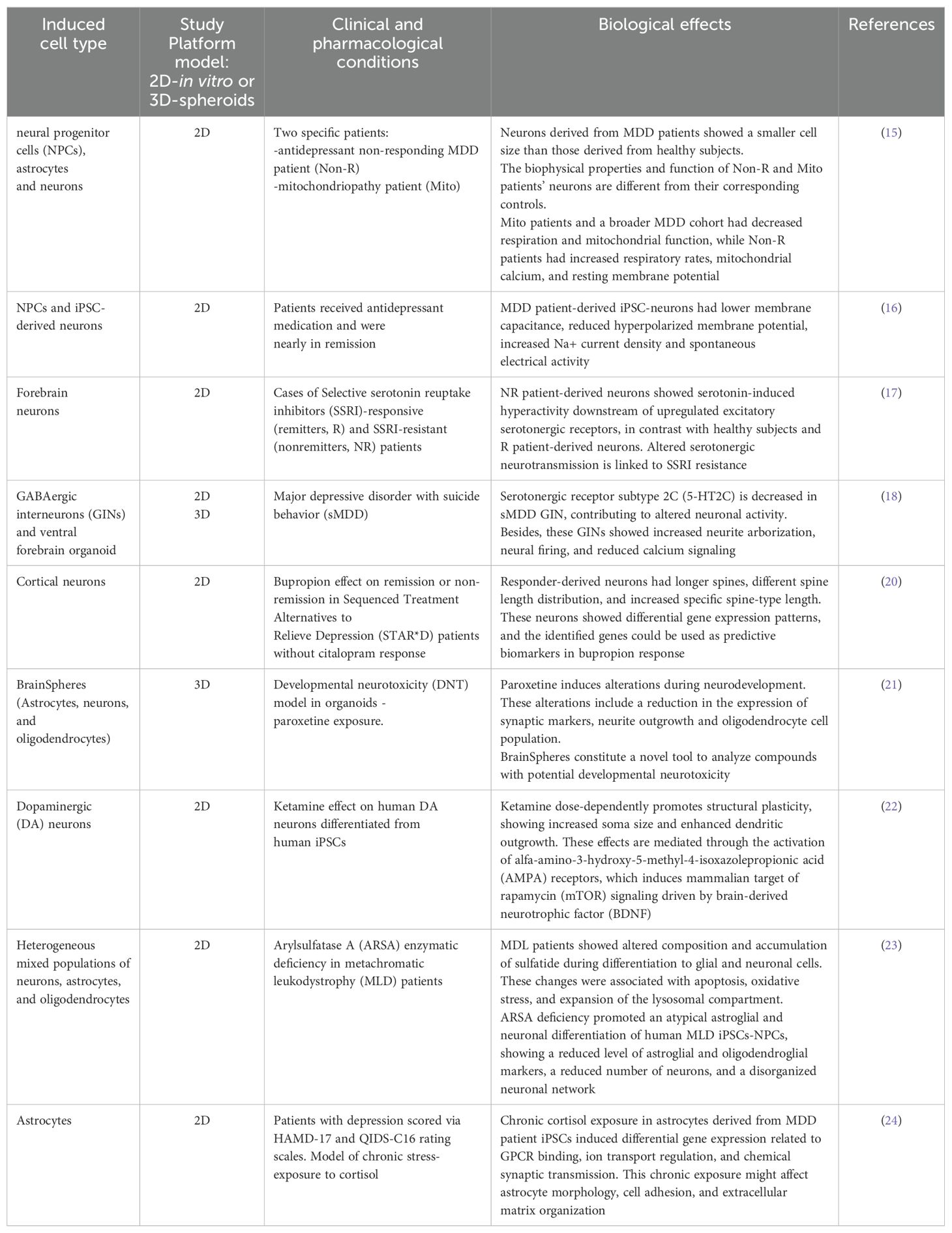 盡管如此,迫切需要開發(fā)新的平臺(tái)來(lái)闡明人類神經(jīng)元和非神經(jīng)元細(xì)胞在抑郁癥中的行為方式,并進(jìn)一步理解其病理生理學(xué)。對(duì)源自抑郁癥患者iPSC的人類神經(jīng)元、神經(jīng)膠質(zhì)細(xì)胞和其他非神經(jīng)元細(xì)胞的研究已證明它們有潛力闡明抑郁癥的細(xì)胞和分子方面,從而有助于詳細(xì)了解這種疾病。