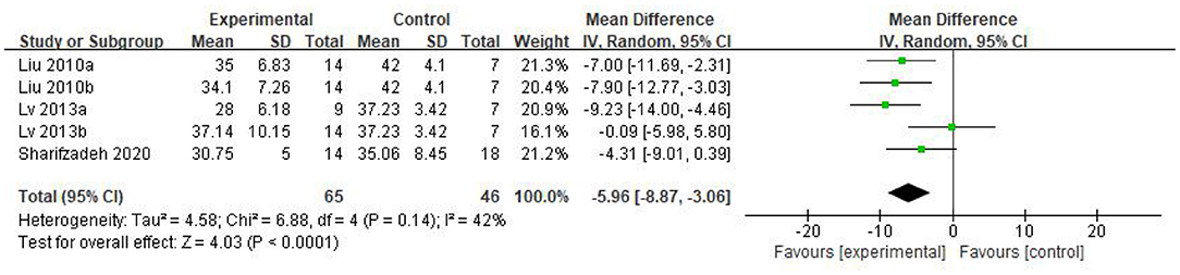 總體而言,我們的結(jié)果表明,干細(xì)胞組在ASD治療中的療效優(yōu)于對(duì)照組。此外,進(jìn)行敏感性分析以消除Lv等人研究的另一個(gè)干預(yù)組 (Lv 2013b) 中的異常值,發(fā)現(xiàn)結(jié)果穩(wěn)定 (WMD: -7.08; 95%CI [-9.46, -4.70] ; p<0.0001;異質(zhì)性檢驗(yàn)p=0.53;我2=0%)。