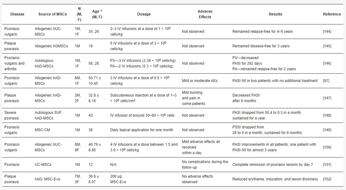 本節(jié)中描述的MSC和MSC-Exo在治療銀屑病患者中的治療特性的臨床研究數(shù)據(jù)總結(jié)在圖4中。