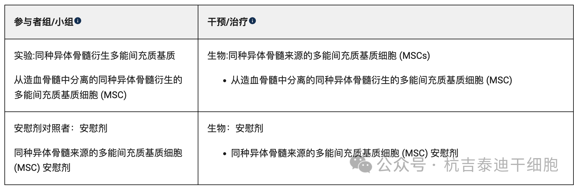40名患者將以1:1盲法接受單次同種異體hMSCs治療,另外40名患者將接受單次安慰劑治療。
