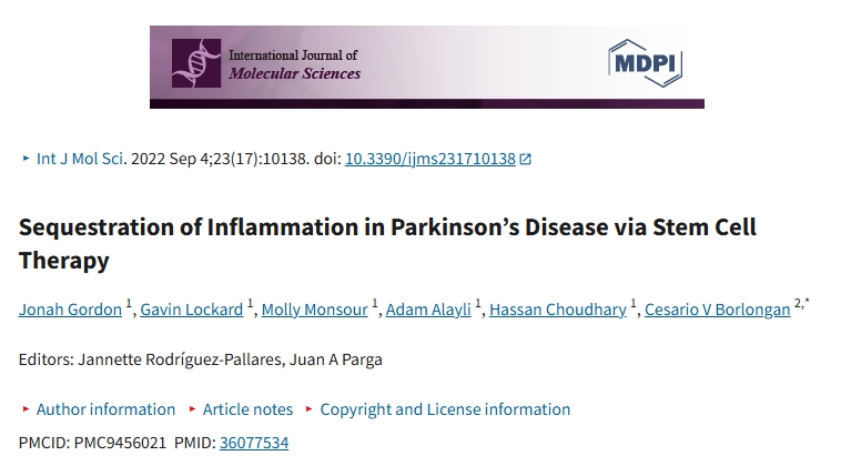 2022年,權威期刊雜志《國際分子科學雜志》發表了一篇“通過干細胞療法阻斷帕金森病中的炎癥”的文章。