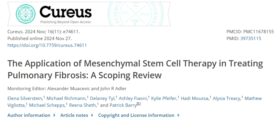 2024年,期刊雜志《Cureus》發表了一項“間充質干細胞治療肺纖維化的應用:范圍綜述?!?/p>