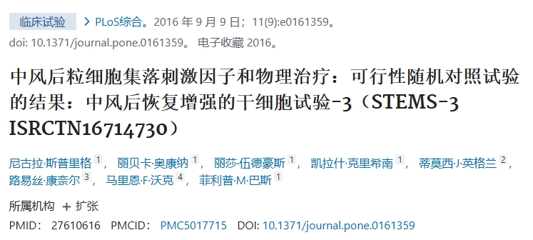 臨床案例五:2016年,Sprigg等人進(jìn)行了一項(xiàng)前瞻性隨機(jī)安慰劑對(duì)照試驗(yàn),納入了118名潛在患者,其中包括60名卒中史為3個(gè)月至2年的成年人。作者評(píng)估了單獨(dú)和聯(lián)合使用 G-CSF(非格司亭)和康復(fù)治療對(duì)卒中恢復(fù)的影響。