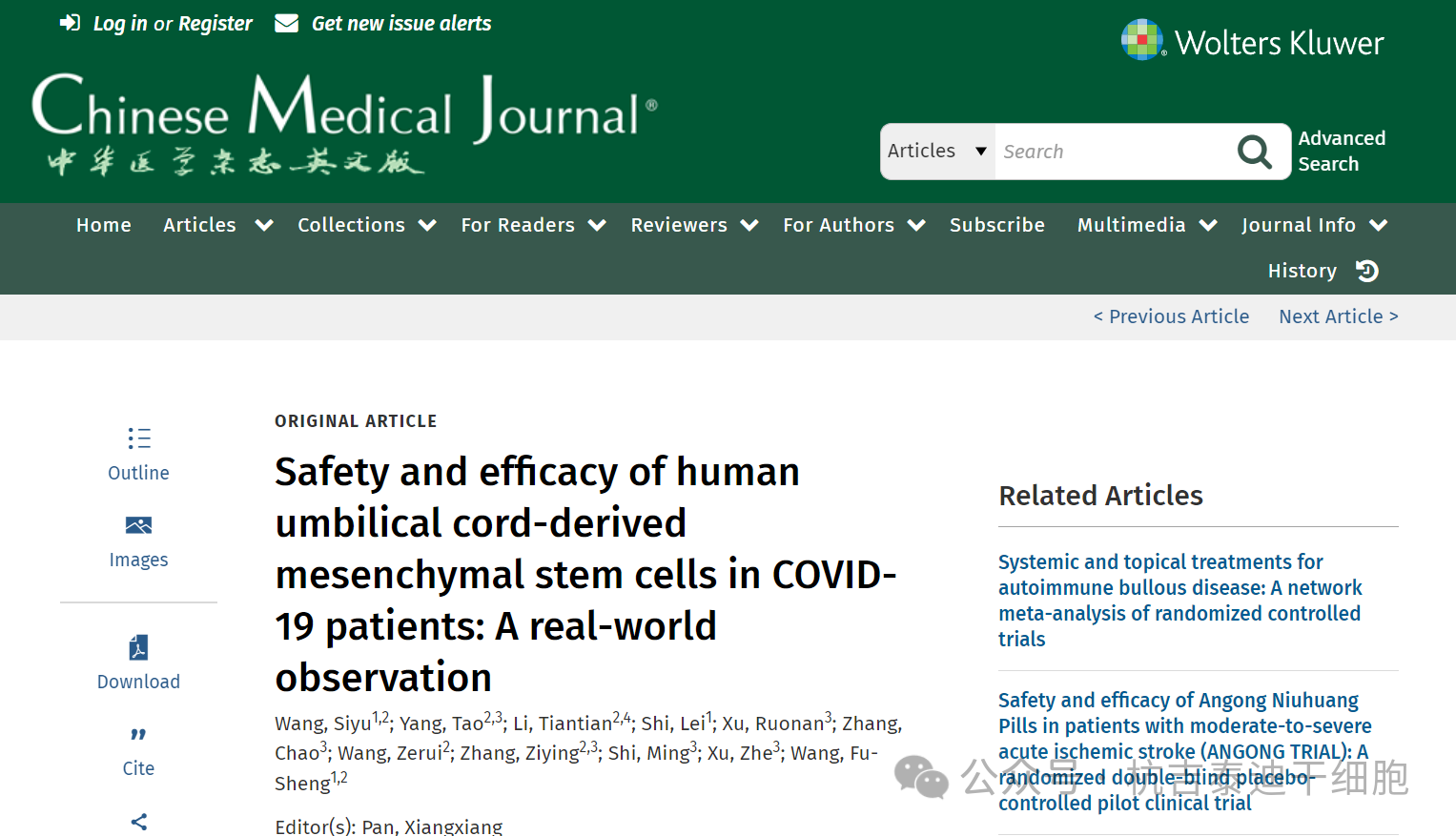 首次通過長達3年的前瞻性隨訪評估了臍帶間充質(zhì)干細胞(UC-MSCs)治療重癥新冠肺炎(COVID-19)患者的長期效果。