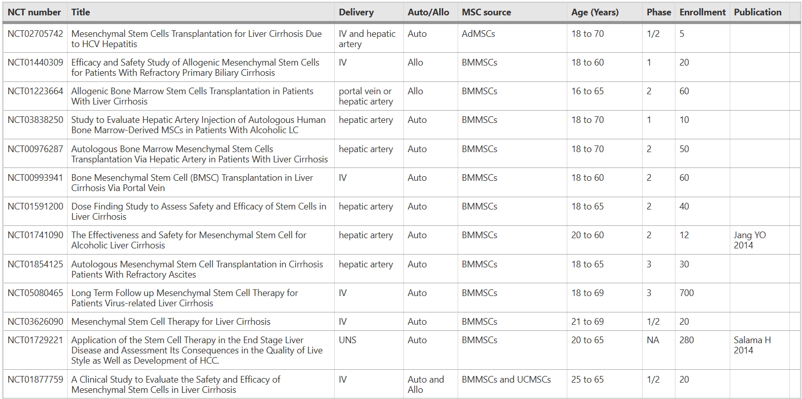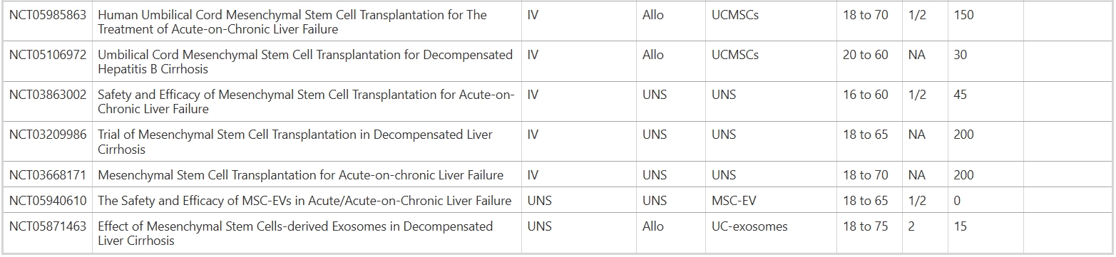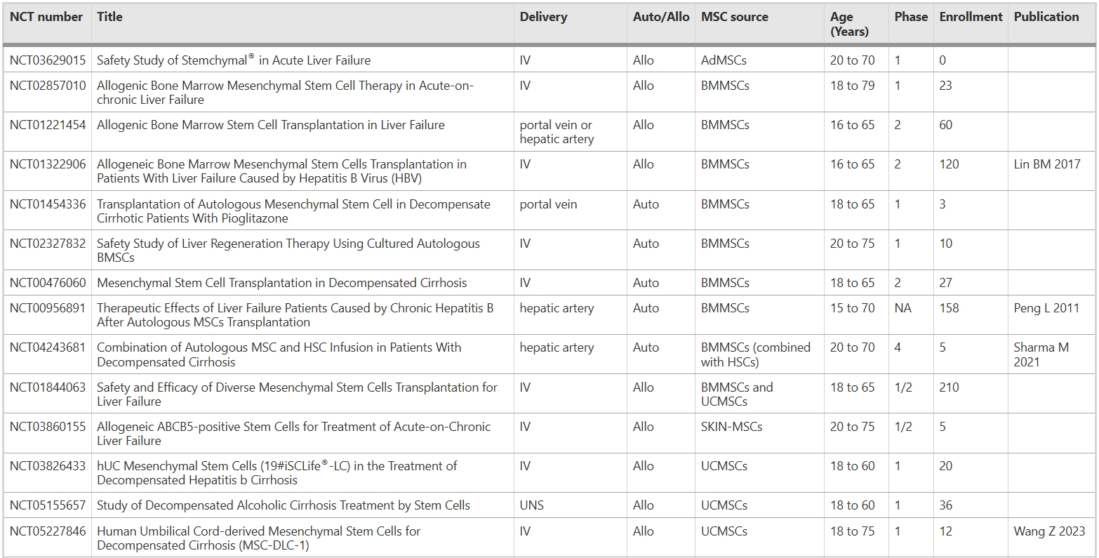 這些試驗展示了MSC療法的應用范圍,通過特定的劑量和給藥策略,可以應對慢性肝病的復雜挑戰,并提供新的再生治療選擇。