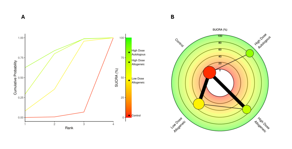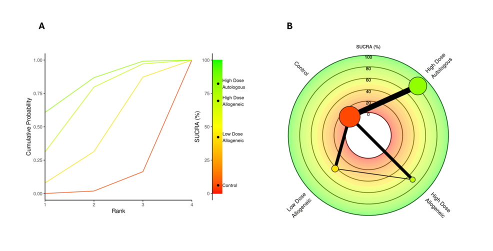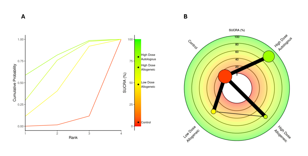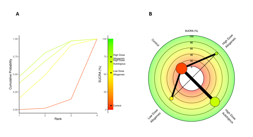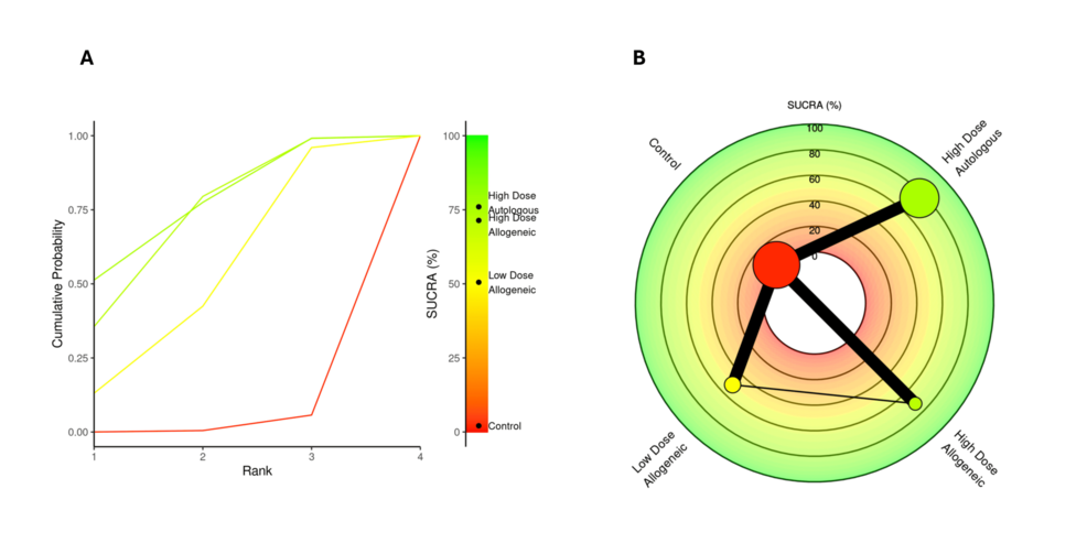 SUCRA 排名:高劑量異基因AD-MSCs略優,自體組緊隨其后