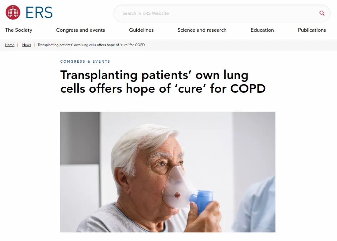 9月27日至10月1日,在全球呼吸領(lǐng)域頂級會議——第35屆歐洲呼吸學(xué)會(European Respiratory Society,ERS)年會上,一項標(biāo)志著慢性阻塞性肺疾病(COPD)治療進(jìn)入再生醫(yī)學(xué)新紀(jì)元的突破性臨床研究正式公布。[10]