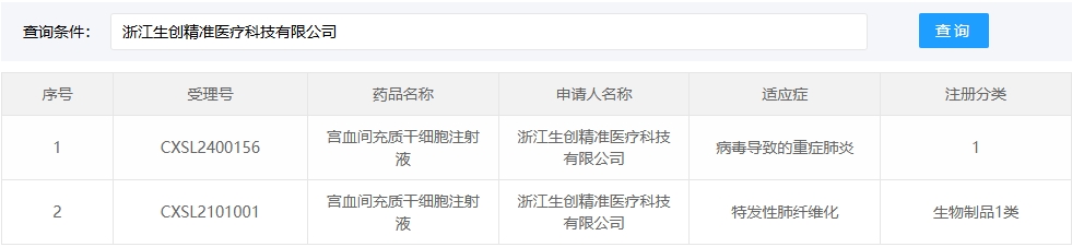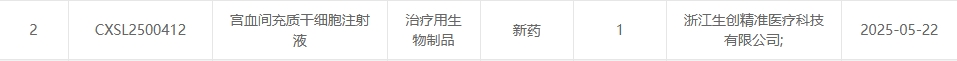 新增受理13:2025年05月22號(hào),浙江生創(chuàng)精準(zhǔn)醫(yī)療科技有限公司的“宮血間充質(zhì)干細(xì)胞注射液”的臨床試驗(yàn)申請(qǐng)獲受理(受理號(hào):CXSL2500412)。這是該款細(xì)胞注射液第3次獲得受理。