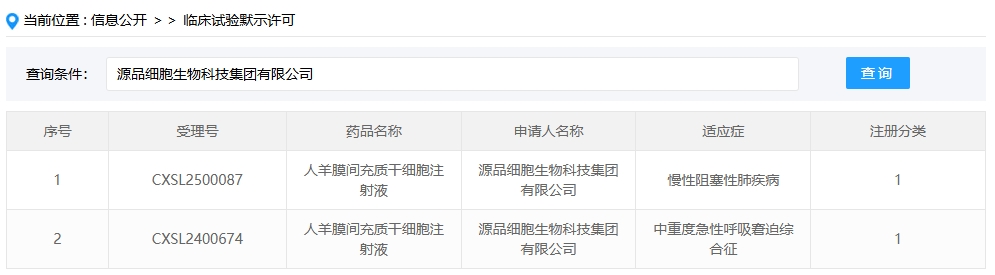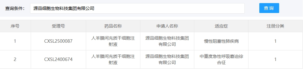新增受理3:2025年1月27號(hào),源品細(xì)胞生物科技集團(tuán)有限公司的“人羊膜間充質(zhì)干細(xì)胞注射液”的臨床試驗(yàn)申請(qǐng)獲受理(受理號(hào):CXSL2500087)。這是該款細(xì)胞注射液第2次獲得受理,適應(yīng)癥:慢性阻塞性肺疾病。