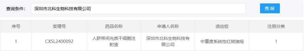新增受理10:2025年05月01號(hào),深圳市北科生物科技有限公司的“人臍帶間充質(zhì)干細(xì)胞注射液”的臨床試驗(yàn)申請(qǐng)獲受理(受理號(hào):CXSL2400092)。這是該款細(xì)胞注射液第1次獲得受理。適應(yīng)癥:中重度系統(tǒng)性紅斑狼瘡。