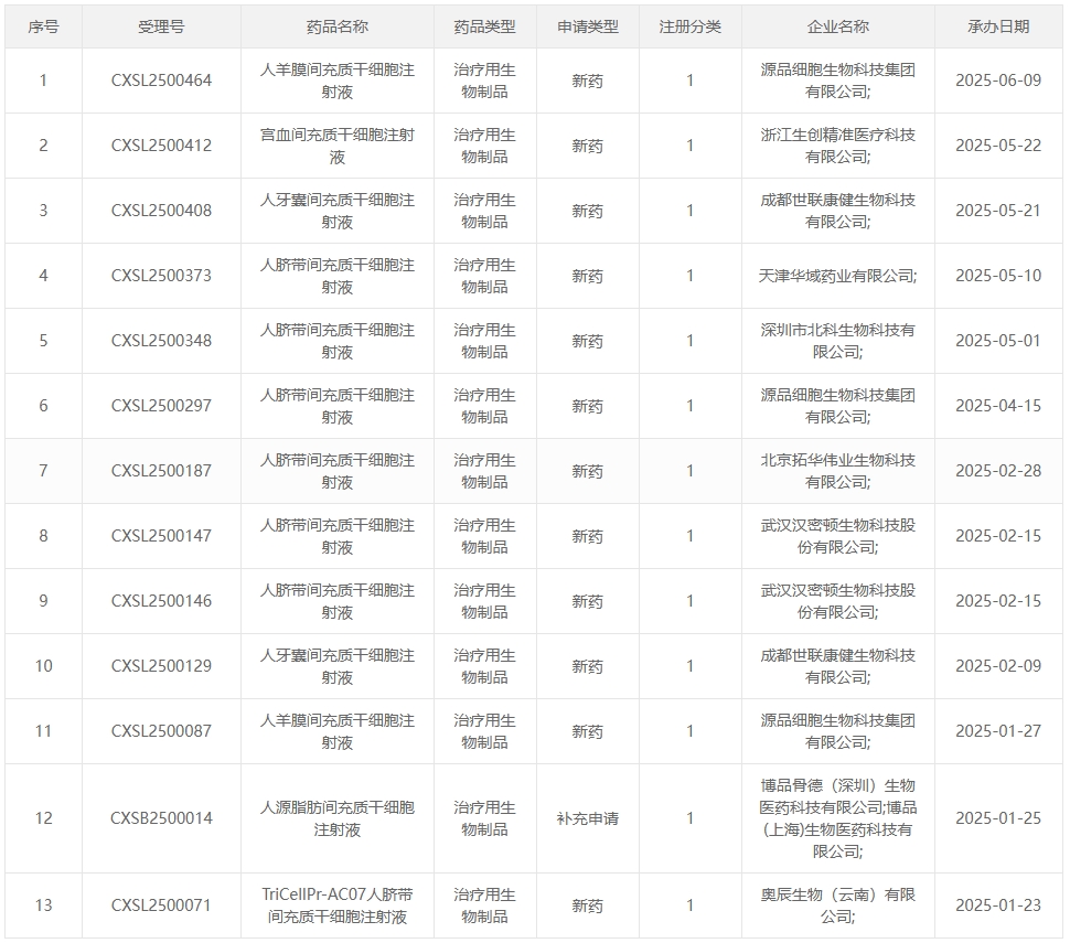 02:2025年1-5月受理的13項(xiàng)干細(xì)胞藥物臨床試驗(yàn)申請(qǐng)?jiān)敿?xì)