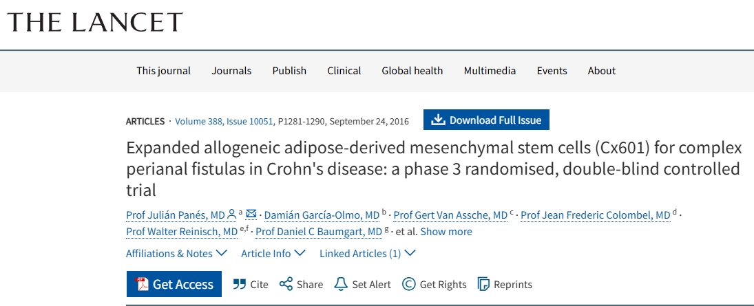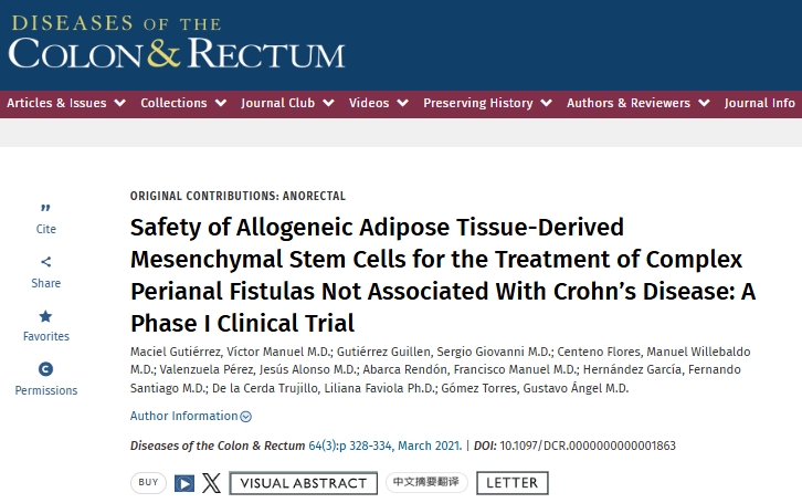 2021年,Maciel等人進行了一項“同種異體脂肪組織來源的間充質(zhì)干細胞治療與克羅恩病無關(guān)的復(fù)雜性肛周瘺的安全性:I期臨床試驗的研究”,旨在評估同種異體間充質(zhì)干細胞 (MSC) 治療非克羅恩病患者的復(fù)雜性肛瘺的安全性。