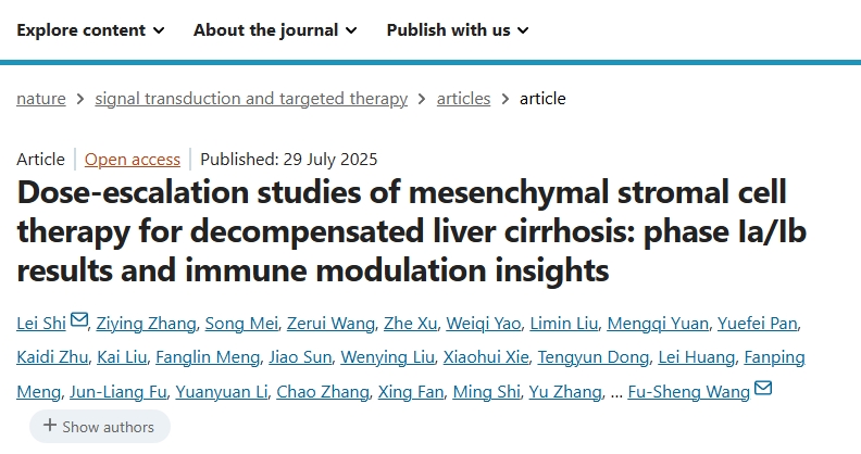 參考資料:[1]:Shi, L., Zhang, Z., Mei, S. et al. Dose-escalation studies of mesenchymal stromal cell therapy for decompensated liver cirrhosis: phase Ia/Ib results and immune modulation insights. Sig Transduct Target Ther 10, 238 (2025). https://doi.org/10.1038/s41392-025-02318-4